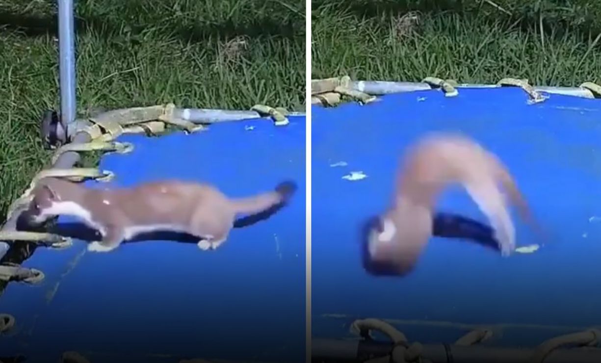 O artista e observador da vida selvagem Robert Fuller se deparou com algo extraordinário em seu próprio quintal, localizado em Thixendale, no norte da Inglaterra. Ao revisar as imagens captadas pelas câmeras de segurança instaladas em sua propriedade, ele descobriu uma cena rara: um filhote de doninha, sozinho, se divertia intensamente em um trampolim infantil.