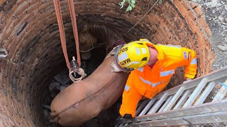 Bombeiros de Januária responderam rapidamente a um chamado inusitado em São Francisco, no Norte de Minas Gerais. Um cavalo havia caído em uma fossa de quatro metros e, portanto, precisava de socorro urgente. Assim que chegaram, os militares encontraram o animal exausto e com ferimentos leves. Para retirá-lo de forma segura, eles montaram um sistema de vantagem mecânica com um tripé, técnica que, além de agilizar o resgate, reduz os riscos de novos ferimentos.