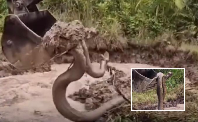 Escavadeira ergue cobra gigante de 6 metros em área rural pic.twitter.com/YRzULSkZQr