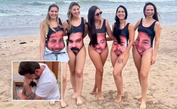Esposas pregam peça e surgem vestidas de maiôs estampados com o rosto dos maridões pic.twitter.com/JMSaaxptB7