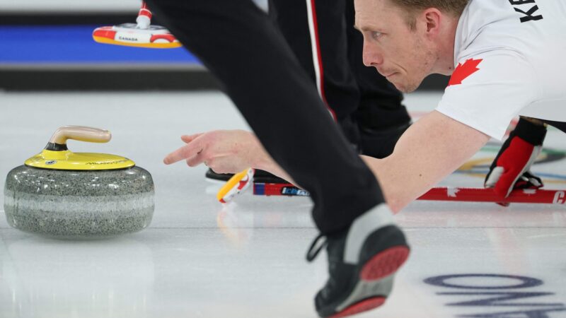 O suíço Yannick Schwaller, no curling masculino.