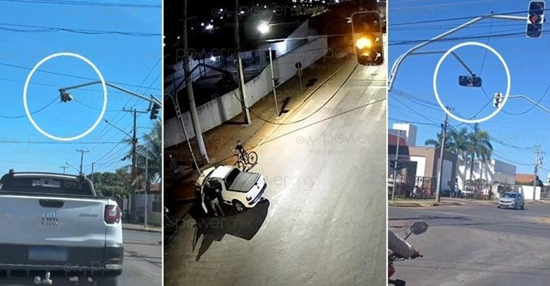 Uma câmera de segurança registrou o momento exato em que uma caminhonete Volkswagen Saveiro, branca, colidiu violentamente contra um poste de semáforo no bairro Jardim Imperial, em Nova Mutum (MT). O acidente aconteceu por volta das 3h30 da madrugada deste sábado (21).