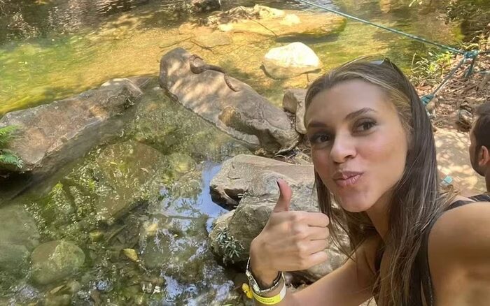 Durante uma trilha na Cachoeira do JK, em Formosa (GO), a estudante Kayanne Fonseca flagrou uma jiboia tomando sol e nadando tranquilamente no local. No dia 28 de setembro, ela gravou o momento e compartilhou o vídeo nas redes sociais, onde rapidamente ganhou repercussão, atraindo a atenção de internautas curiosos pela serenidade do encontro.