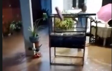De acordo com o relato que acompanha o vídeo, a chuva começou no início da noite e se intensificou em pouco tempo. A água avançou para o interior da casa, cobrindo o piso e atingindo móveis. O registro não informa se os moradores estavam no local no momento do alagamento.